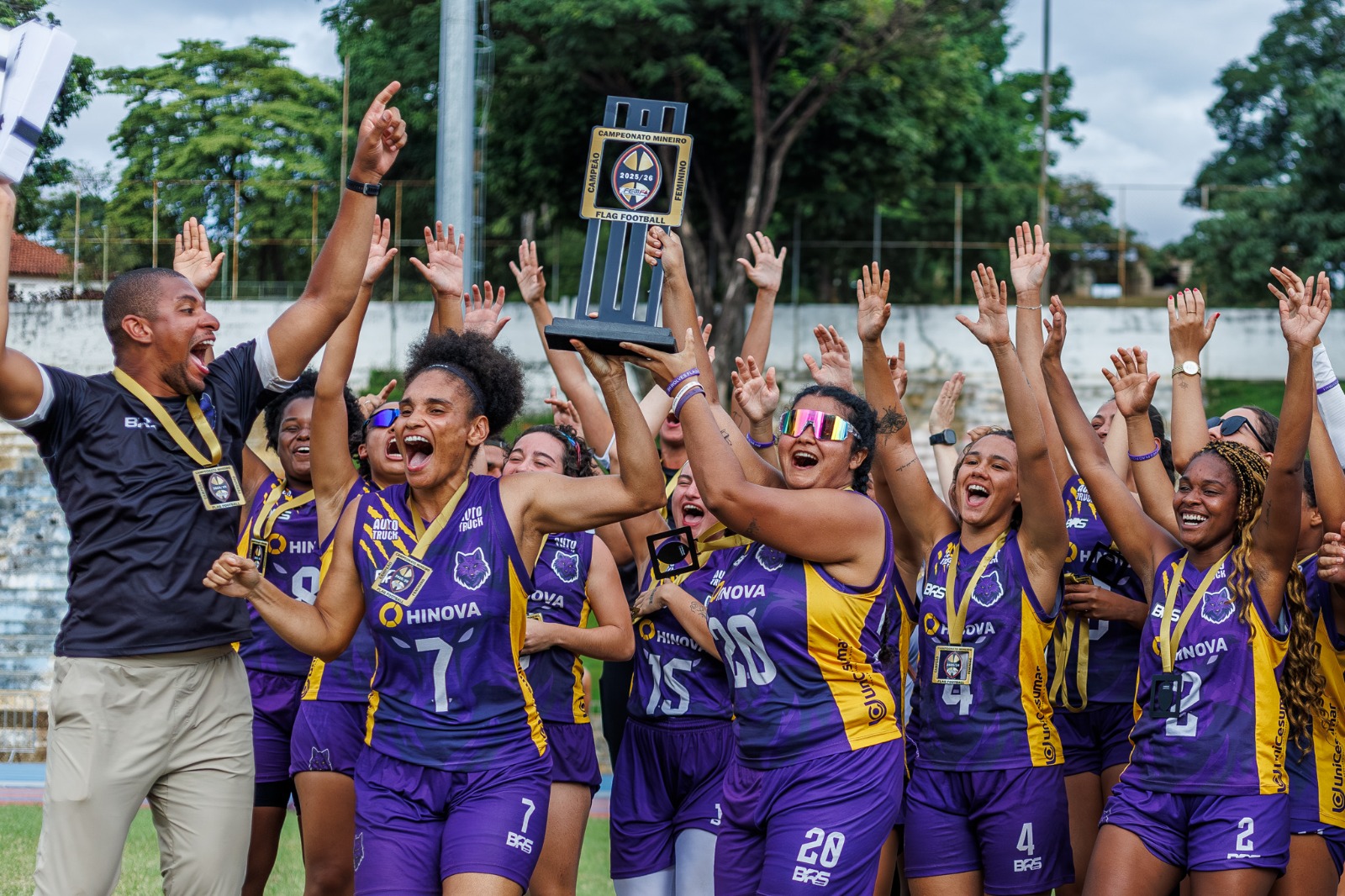 Pela primeira vez, um mesmo time conquistou os títulos masculino e feminino na mesma edição, protagonizando uma dobradinha inédita. O BH Wolves, projeto recente do flag football belo-horizontino, dominou a competição e confirmou sua rápida ascensão ao topo do cenário estadual, pintando Minas Gerais de roxo.